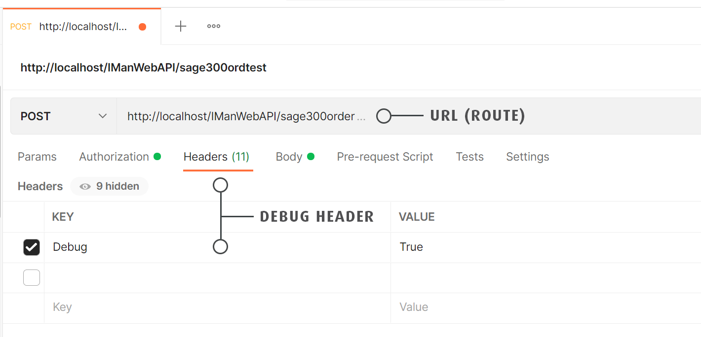 On the initial setup, we recommend the endpoint is unsecured by allowing Anonymous requests. - In Postman (or whichever client you use) setup a request to the endpoint (as defined by the route).